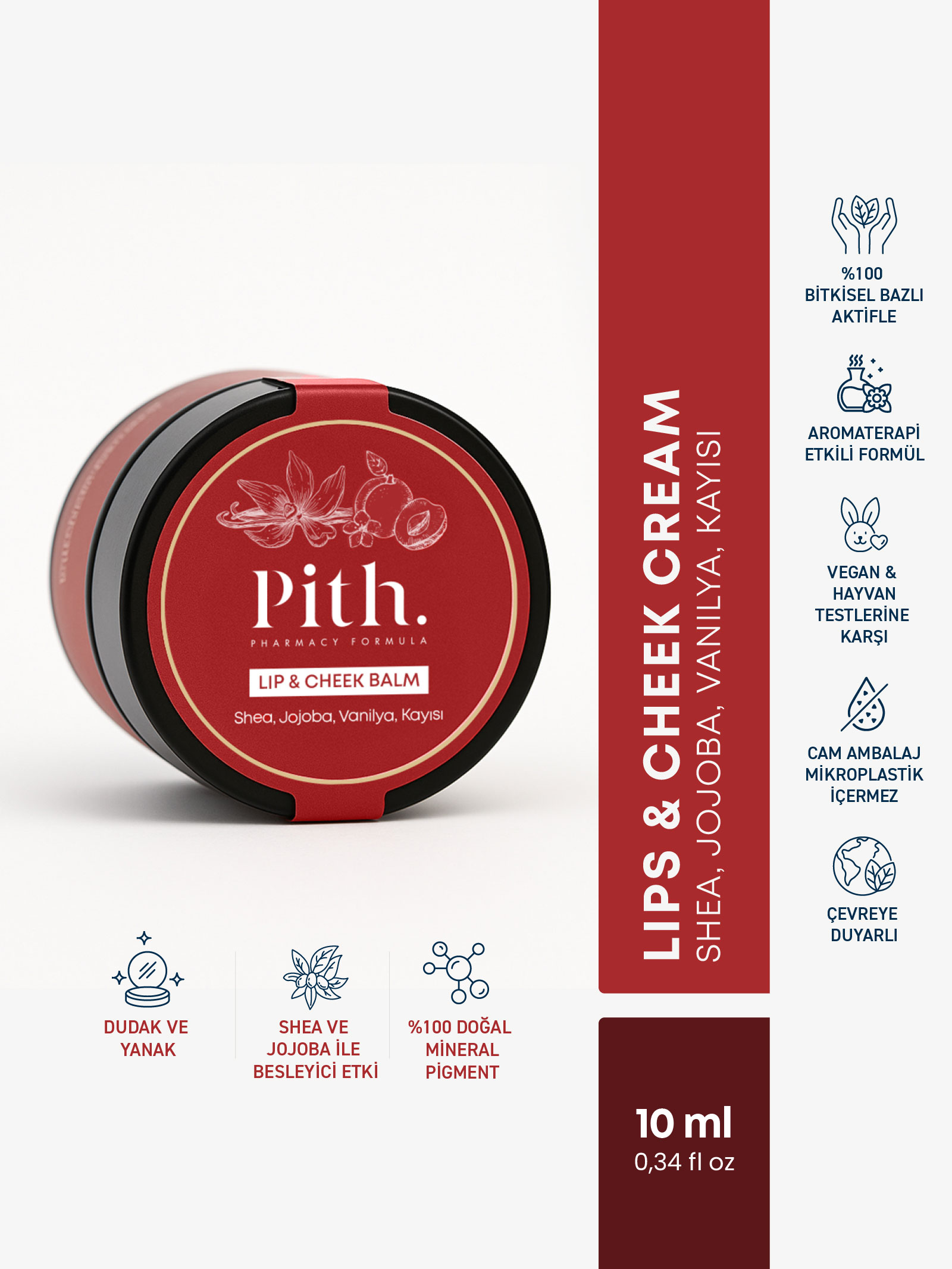 Dudak, allık ve far olarak kullanabileceğiniz %100 doğal pigmentli, içeriği temiz balmdır.; İçeriğindeki jojoba, shea ve kayısı yağı cildi besler, gerçek vanilya özü ile hoş koku verir.; Kullanimi: Dudak ve cildi besler, bakim saglar.; Temiz dudak ve yanaklariniza parmak uclarinizla uygulayin.; Renk yogunlugunu artirmak için kat kat sürülebilir.; Uyarı: Sadece harici kullanim icindir.; Gözle temas ettirmeyin.; Çocuklarin ulasamayacagi yerde saklayiniz.; Alerji riskine karsi icerikleri kontrol ediniz.; Cilt testi önerilir.